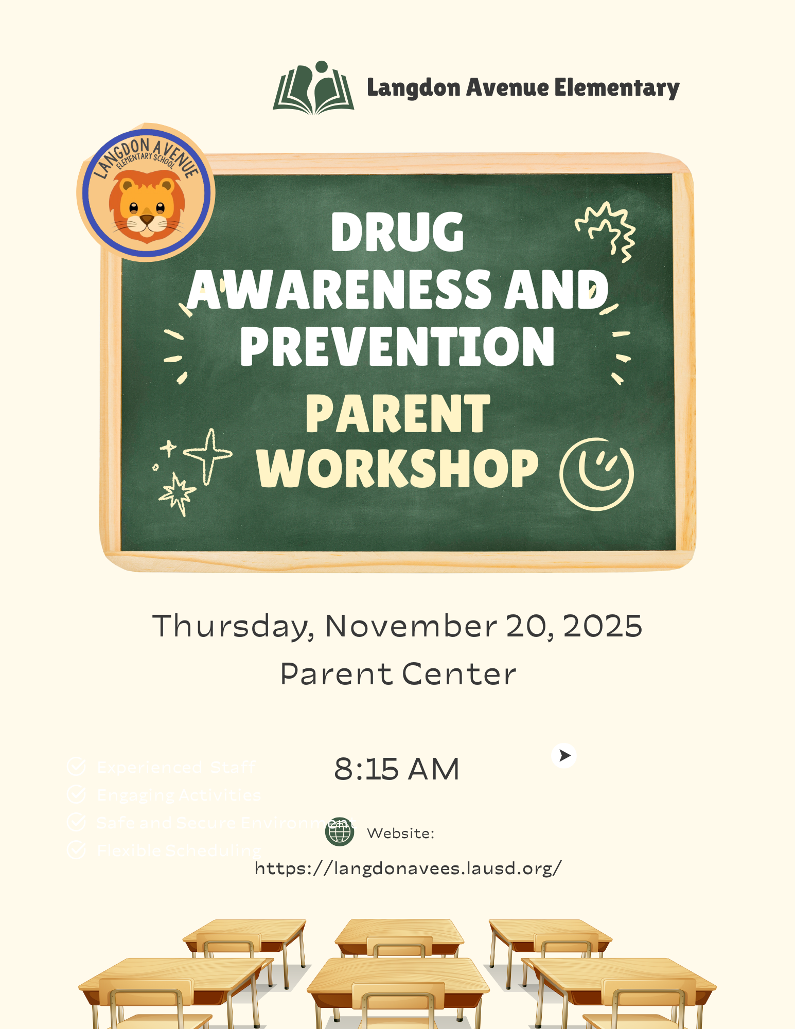 Drug Awareness and Prevention Parent Workshop / Taller para Padres Concocimiento y Prevención Sobre Las Drogas: November 20, 2025